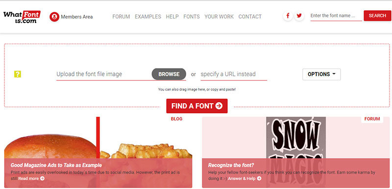 WhatFontIs accepts several modalities to upload your image. You can upload the image as a file, in the form of a screenshot, as a URL, or by dragging the image or copy and paste. It’s not quantum physics, but you have to pay attention to use GIF, JPG, or PNG formats, at least one horizontal line text, as well as unattached Latin letters.